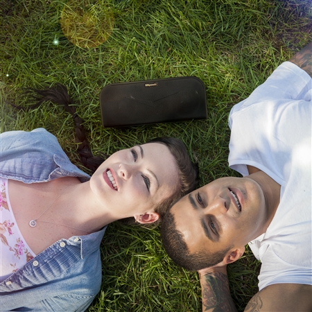 Click here to give this little speaker a run for its money on Amazon: Klipsch KMC 1 Black Portable Speaker with Bluetooth, Black